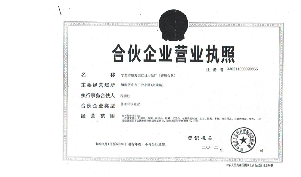 Business license of Meihong first registered in 2012