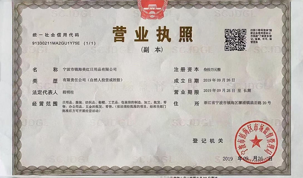 Business licens of Meihong update in 2019