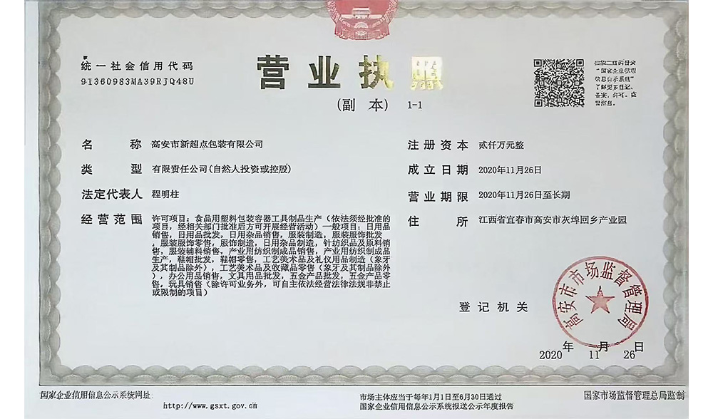 Business license of New Super Point first registered in 2020